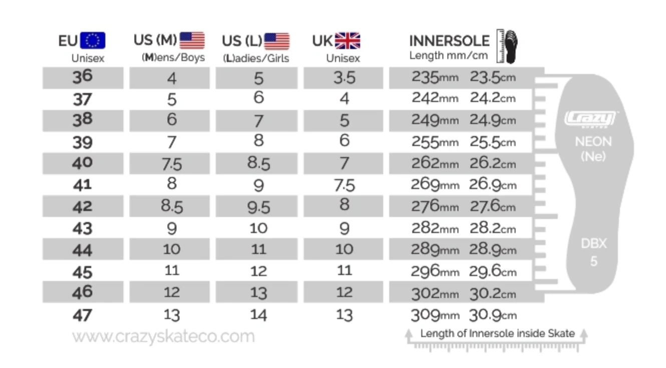 The Crazy Skates NEON package is the super affordable introduction to the Crazy Derby lineup. Featuring the time tested DBX 5 full grain leather boot with a number of patented features for ultimate support, the industry leading Apollo composite nylon / fibreglass plate and the Quakewheel.