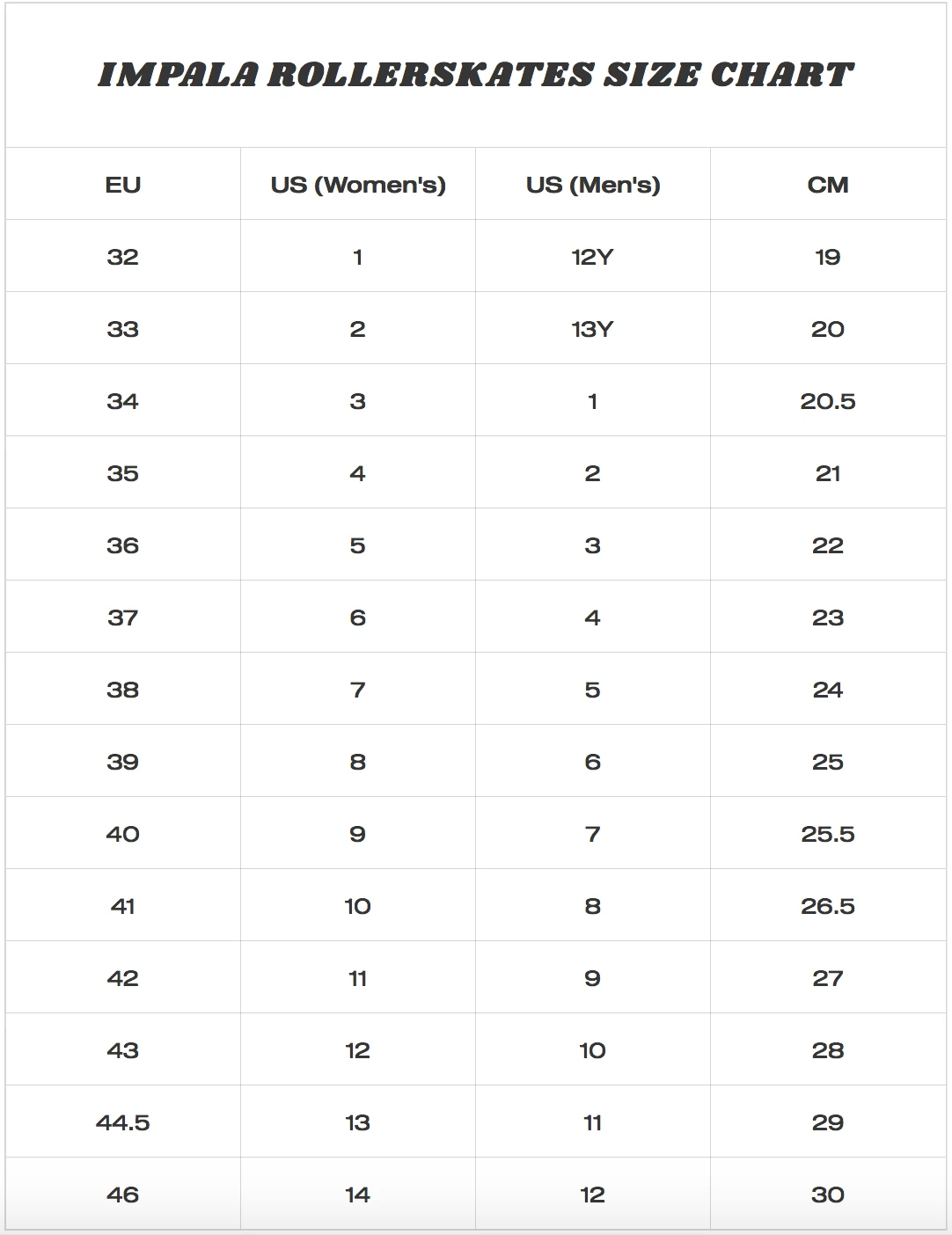 Sizes listed as standard Women’s. For Men’s size conversions please see our size chart in images