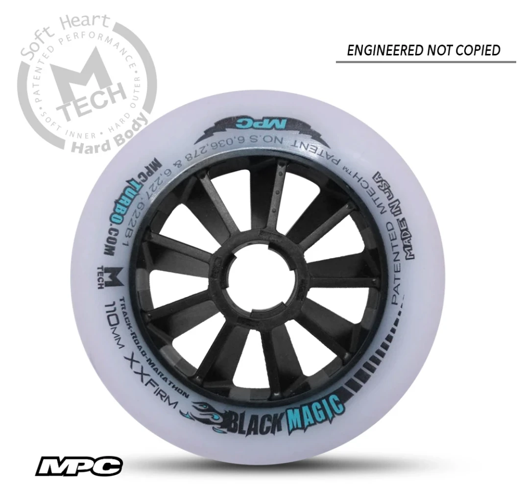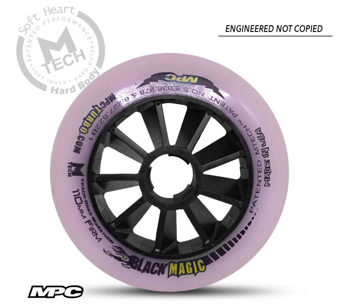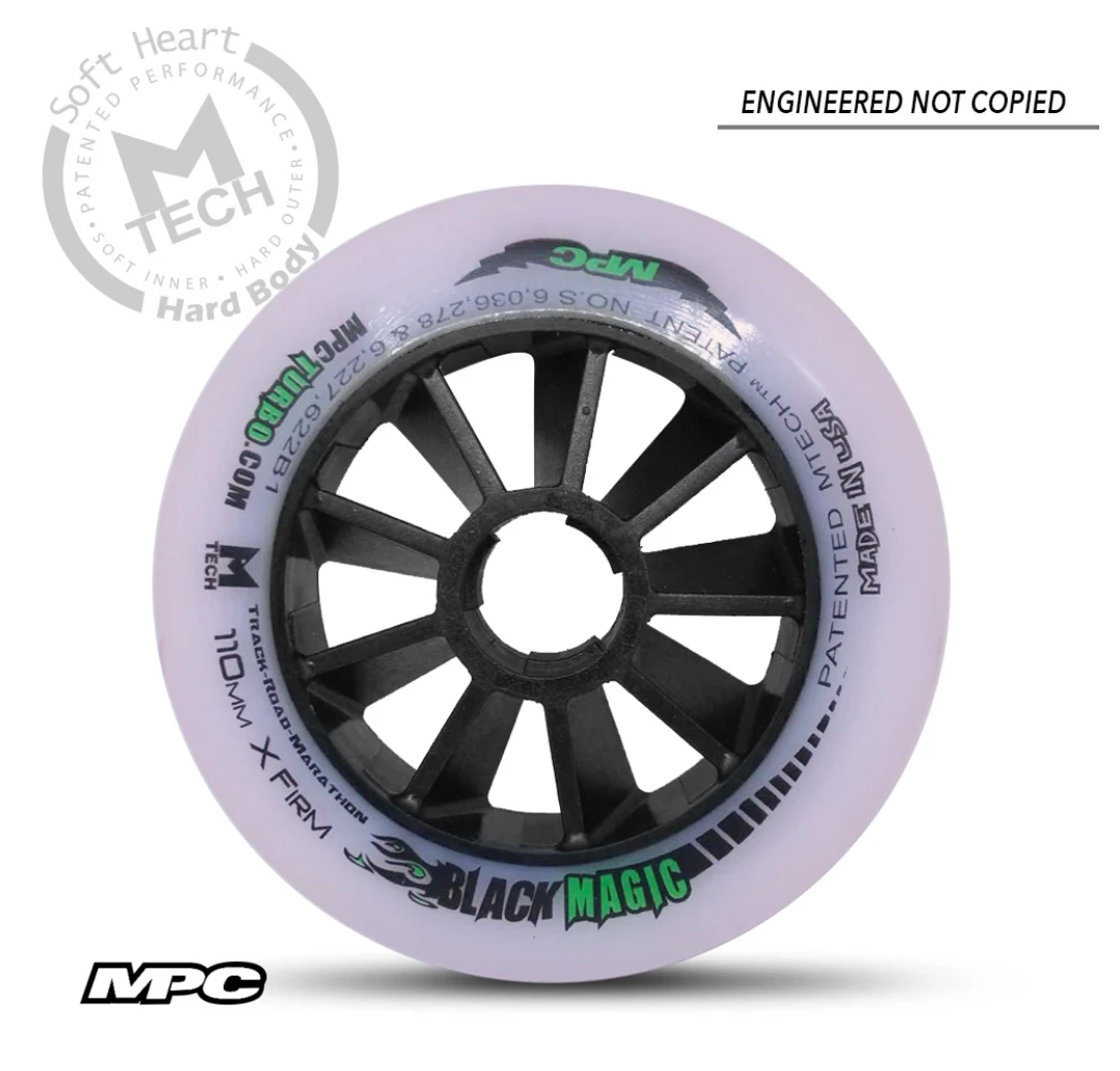 Black Magic is simply MPCs best formulation ever, known for its performance under the feet of worlds greatest inline speed skaters. It offers excellent grip, roll, and wear characteristics with a stiffer Black Turbo hub. This wheel proved itself for the first time at the Inline Speed Skating World Championships in Oostende, Belgium in 2013, breaking the 300m world record and going under 24 second for the first time in history, proving that a wheel that is half a second per lap faster than the competition will take you to the top of the podium. Since then, the Black Magic wheel claimed countless world championships and podiums, and is the most successful wheel in the sport.